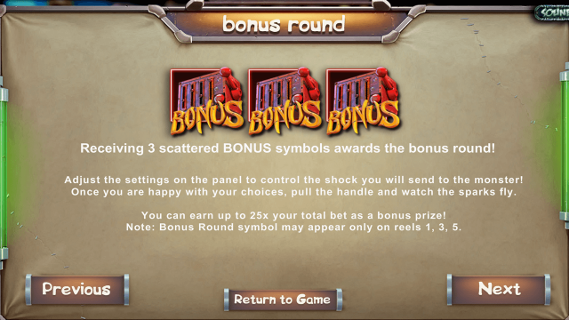 Призовая мини-игра запускается когда выпадает три спецсимвола Bonus. Игроку нужно настроить мощность тока при помощи четырех переключателей и нажать на красный рычаг. Разряд тока поступит в электрический шлем и пронзит тело монстра. После этого игрок получит призовую сумму. В бонусной мини-игре можно выиграть до 25 выплат равных размеру общей ставки.